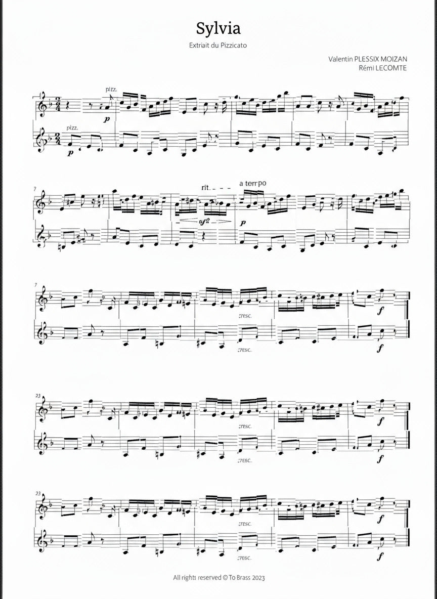 Complete score with separate parts of "Sylvia" arranged by To Brass.